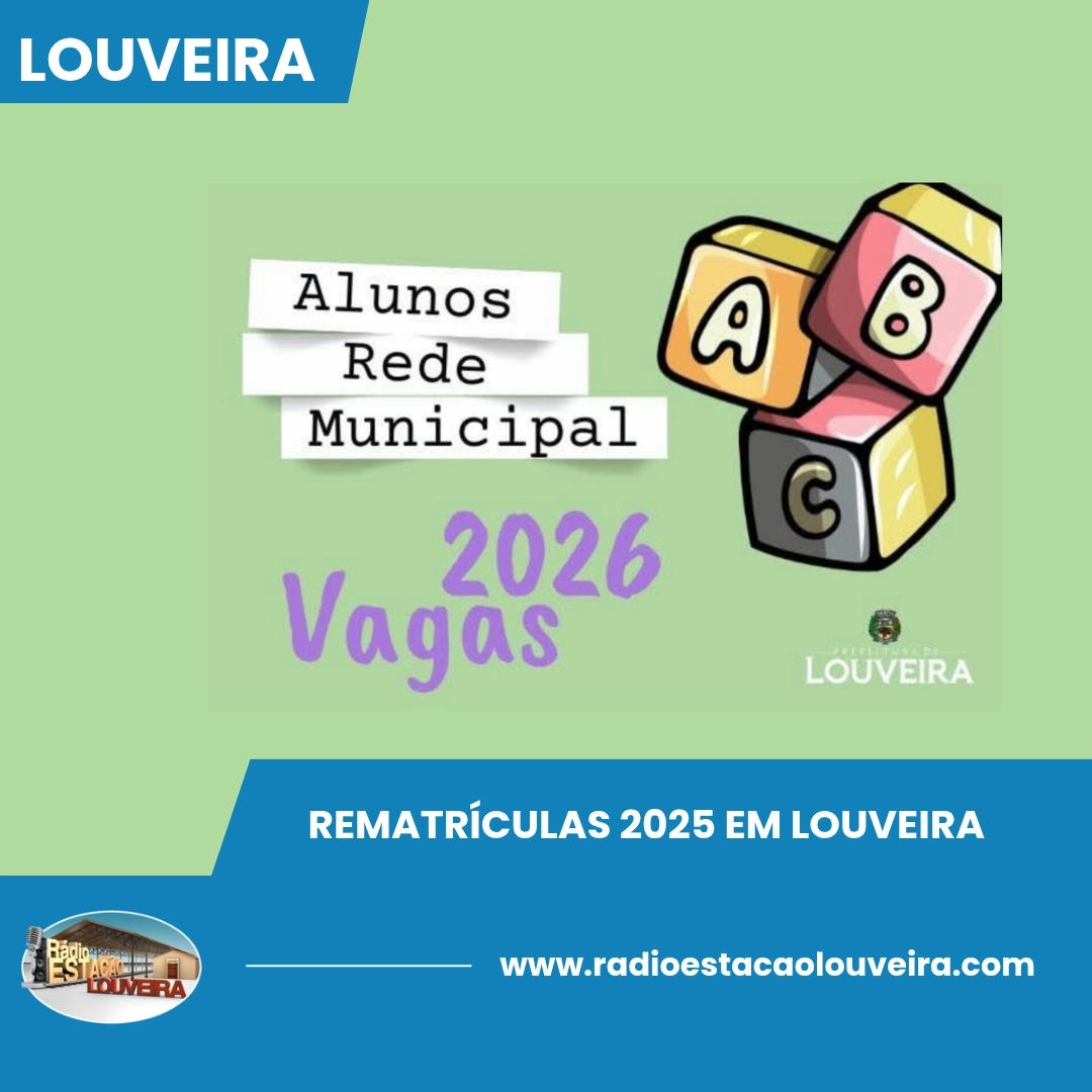 LOUVEIRA: A Prefeitura de Louveira, por meio da Secretaria de Educação, dá início nesta semana às rematrículas para alunos da Educação Infantil (fases 2 a 5 / 2 a 5 anos) e Ensino Fundamental (1º ao 5º ano). O processo acontecerá a partir de 30 de outubro a 07 de novembro nos horários de atendimento de cada unidade escolar.